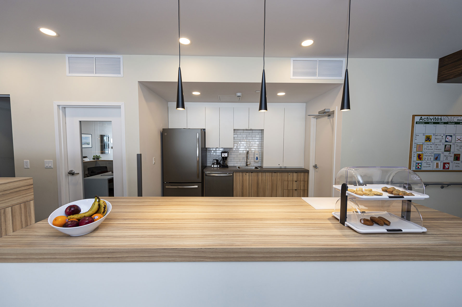 L'accueil des employés, la configuration de l’espace, l’ambiance familière, l’odeur des mets fraîchement préparés donnent le sentiment d’être à la maison. C’est ainsi que l’on souhaite que chacun se sente aux Résidences de l’Estuaire.
